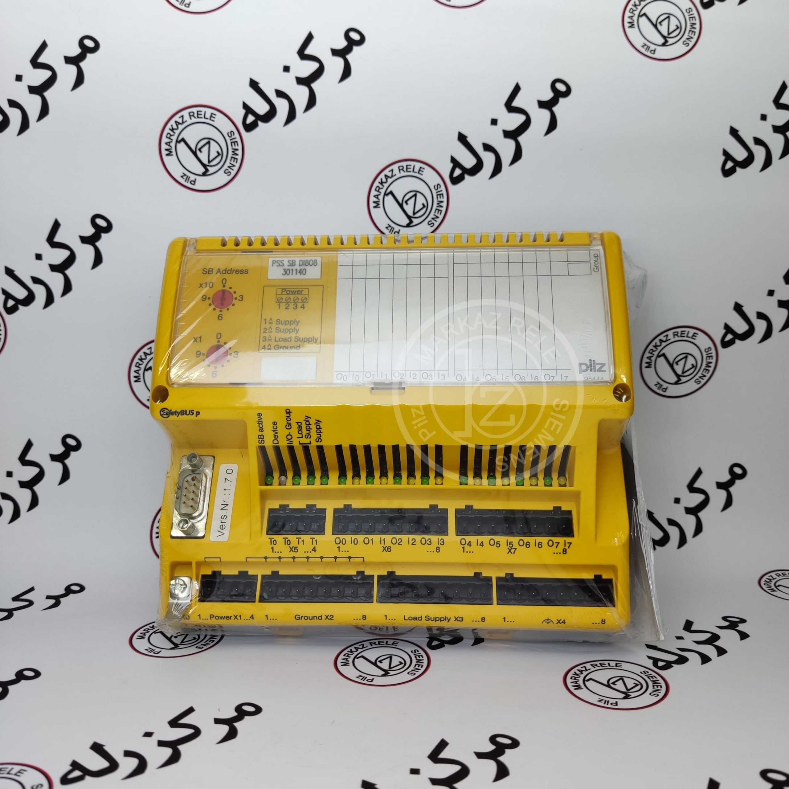The PSS can read and process the status of inputs and outputs in bits or bytes via SafetyBUS p ® . The inputs and outputs on the PSS SB DI8O8 can be allocated to a maximum of 2 logical groups on SafetyBUS p ® . Outputs may only belong to one of the groups. Each input and each output has space available for inscription and a status LED.